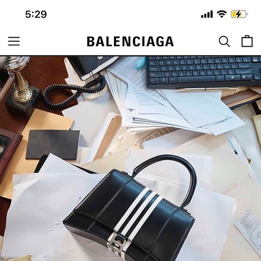 I do not support Balenciaga, but many of us are not running to pay $1,790 for a trash bag pouch. However, Balenciaga has a very close relationship with Adidas, and their branding is all over Balenciaga. Should we consider voting with our dollar when it comes to Adidas?