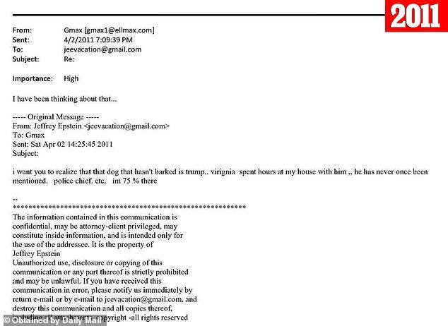 In the 2011 email from Epstein to Maxwell, Democrats redacted the name of the victim Epstein mentioned. The one where he wrote: “I want you to realize that that dog that hasn’t barked is trump. [VICTIM] spent hours at my house with him, he has never once been mentioned.”