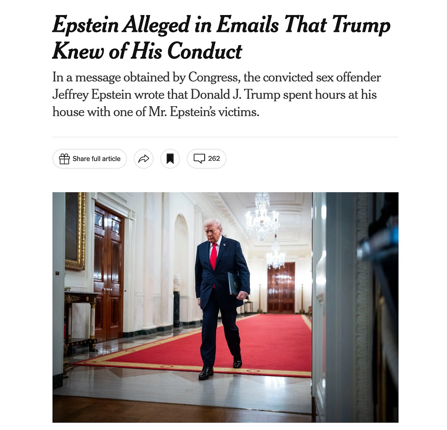 If you turned on MSNBC or CNN yesterday, you’d think the walls were closing in on Trump (again). Three “bombshell” emails from Jeffrey Epstein’s archive, carefully selected and released by House Democrats right as they were facing blowback for caving on the government shutdown and in the end getting nothing. Must distract, drop some emails.