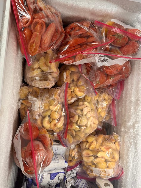 Quick life updates: My husband spent today doing a long drive to pick up over 200 pounds of pig for the freezer. While he was gone, I got to sleep in, which was glorious. I remembered that someone (me) needed to completely rearrange our freezers to actually fit 200 pounds of pork. So I spent my morning playing Tetris with frozen food, moving things around, and coming to the stark realization that before any of this pig fits anywhere, I’m going to have to can about 50 pounds of peaches and another 50 pounds of tomatoes this weekend.