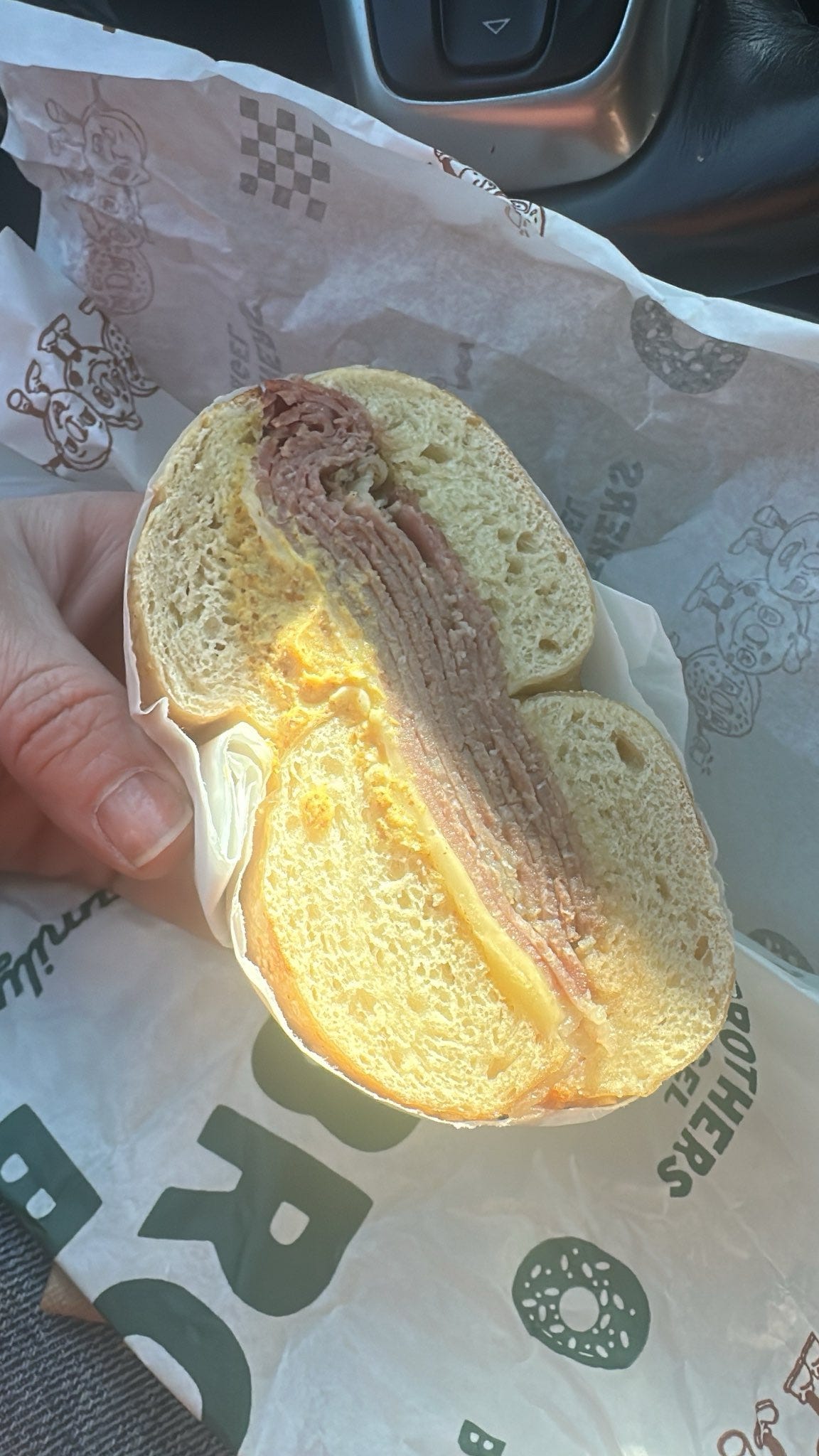The only thing I was willing to brave the cold for? Bagels. We checked out Brother’s Bagels, a new local spot, and I’m here to report: it’s the real deal. Good bagels and good coffee, which is not always a given. I haven’t worked through the whole menu yet, but my current favorite is the Brooklyn sandwich—pastrami, Gouda, and deli mustard — I got it on a plain bagel. I also brought some bagels home, and the salt and everything are fighting for top billing.