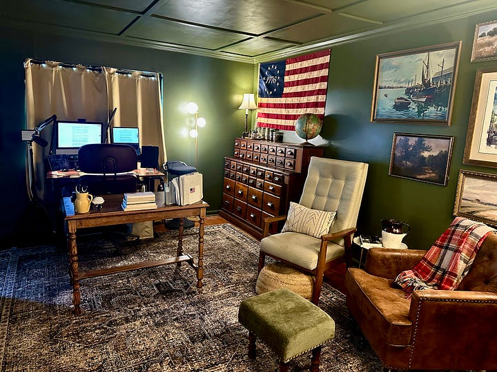 It’s intimate. Cozy. The kind of room that wraps around you instead of demanding something from you. I walk in, and my shoulders drop half an inch. That’s the goal, honestly. I wanted a space that felt like mine, not a productivity aesthetic from Pinterest, not a content creator’s backdrop. Just a room that says yes, you can relax here, go make something.