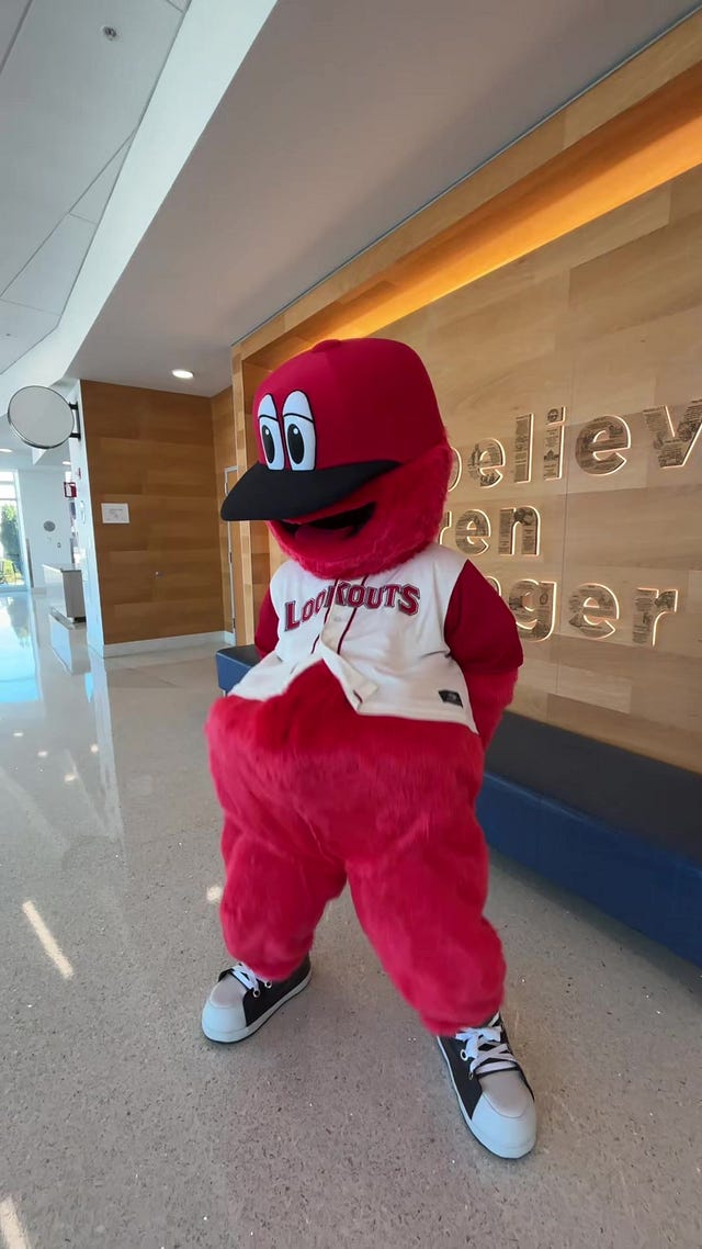 A little girl ran up to Looie, the Lookouts’ mascot. If you saw Looie walking down the street, you’d swear it was Elmo in a baseball jersey and Converse with a pot belly and a baseball cap with googly eyes stuck to it as his face. He bent down, wrapped his arms around her, patted her head, and sent her running back to her parents. A high school marching band was warming up somewhere past the outfield.