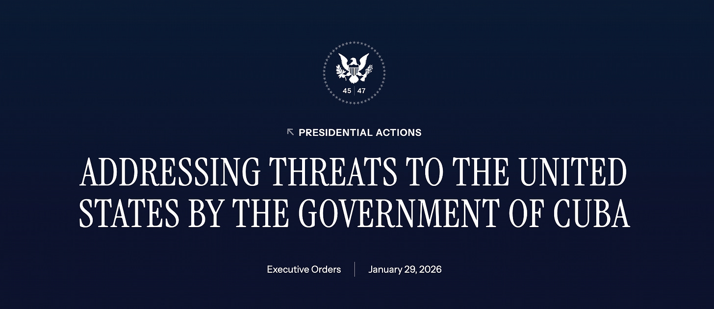 The Cuba EO specifically calls out Iran as one of Cuba’s malign partners. This isn’t three separate foreign policy tracks, it’s one strategy targeting the interconnected web of U.S. adversaries.
