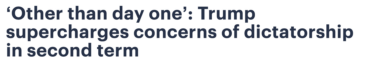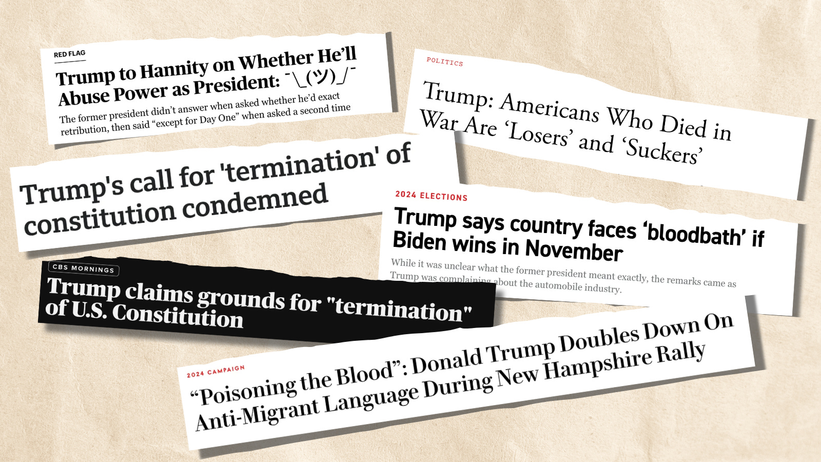 Every example she gave is an example that Democrats and the MSM often refer to as evidence of the threat that Trump poses to our country. We have heard the stories of Trump warning of a bloodbath if he loses how he wants to be a dictator on day one. And his threats to political opponents, canceling the constitution, and that he has threatened to use the military against American citizens.