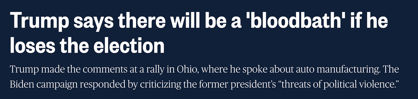 Did Trump threaten violence on the American people and say that there would be a "bloodbath" if he didn’t win the election? No.