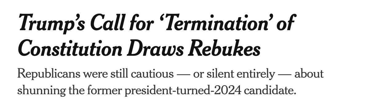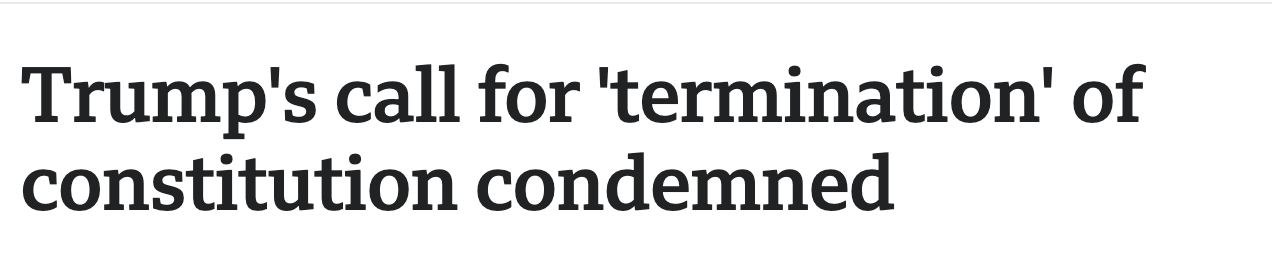 But the media ran with the story that Trump called for the termination of the Constitution.