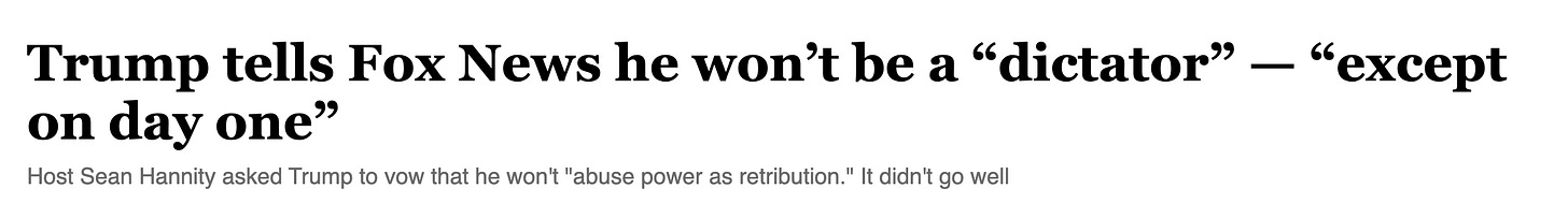 But it was the Biden campaign that took the lead. Remember Biden? The president? He was still in the race then, and his campaign quickly sent out an email to supporters right after the town hall ended, with the subject line: "Donald Trump: Day One Dictator." The Democratic National Committee also shared a video of Trump's remarks, captioning it, “And there you have it.”