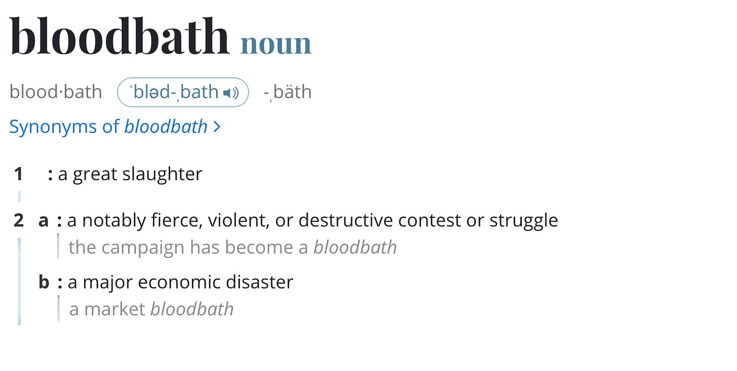 If you are an honest broker and journalist, it is clear that Trump was warning of an economic bloodbath. I don’t want to be the one who pulls out a dictionary to make an argument, but bloodbath is a common phrase when addressing an economic disaster. However, if you look up Bloodbath in Merriam-Webster, one of the definitions is "a major economic disaster."