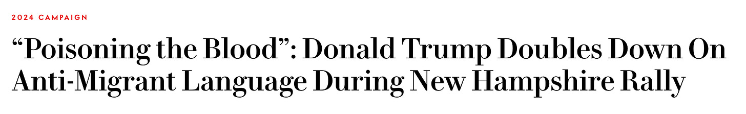 In that interview, Trump made it clear: unchecked immigration is destabilizing America—undermining our security, public health, and economy. His words, "poisoning the blood of our country," weren’t about bloodlines but about the relentless attack on American principles. He argued that by failing to secure our borders, we’re opening the door to people who want to exploit our system—or worse. But, as expected, the media pounced, twisting Trump’s words, claiming he was making a racial statement and dragging him through the mud with comparisons to Hitler, even suggesting he sounded as if he were reading from Mein Kampf.